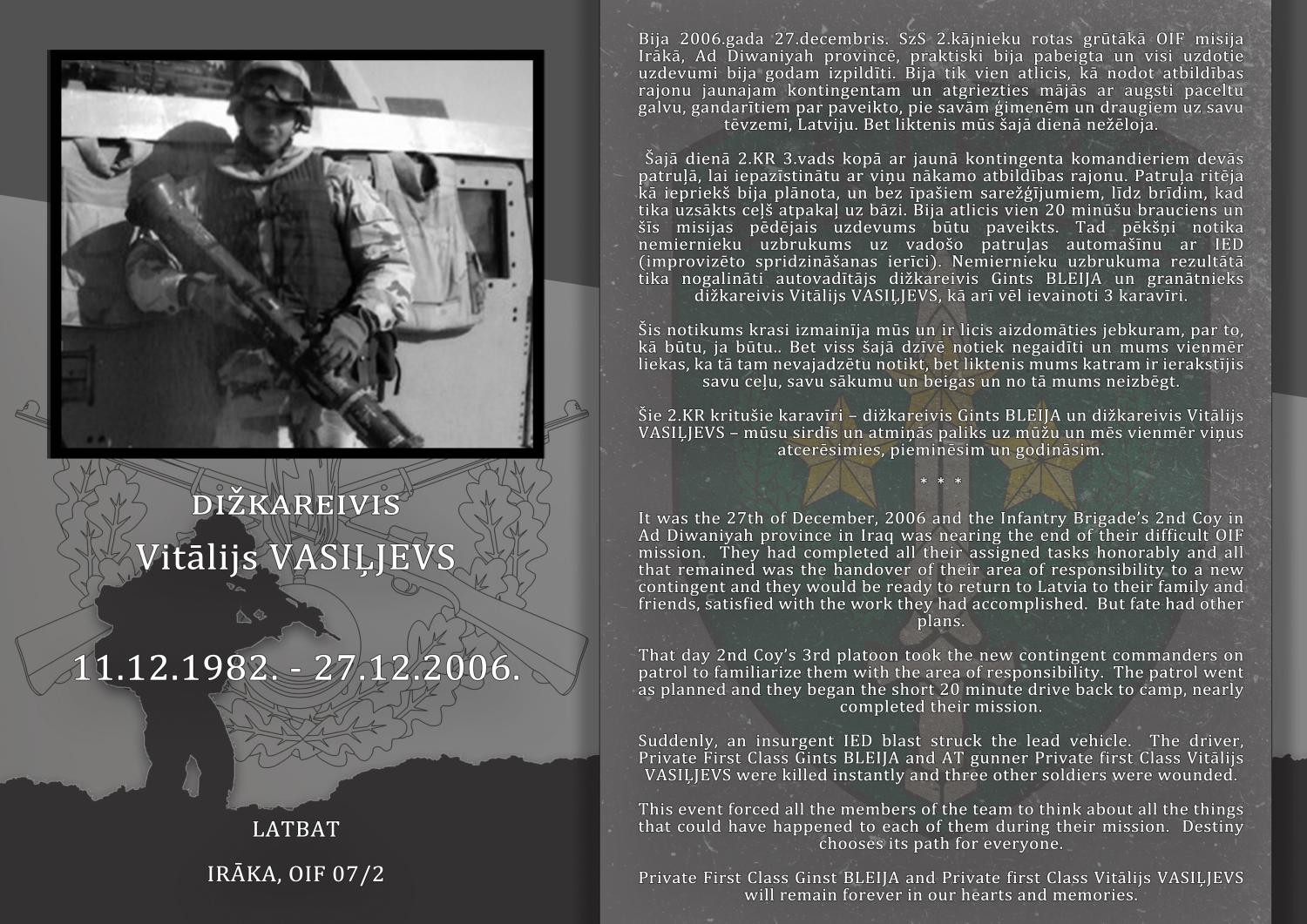 Kritušie karavīri Filips Jansons Jānis Voitkevičš Andrejs Merkuševs Dāvis Baltābols Voldemārs Anševics Edgars Ozoliņš Gints Bleija Vitālijs Vasiļjevs Olafs Baumanis Video