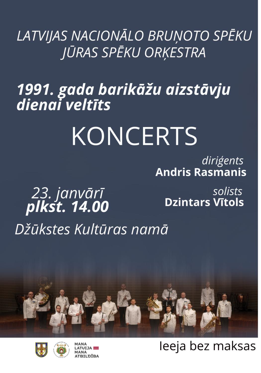23. janvārī plkst. 14.00 Džūkstes kultūras namā Nacionālo bruņoto spēku Jūras spēku orķestris un ģitārists seržants Dzintars Vītols aicina uz 1991. gada barikāžu atceres dienai veltītu koncertu.
